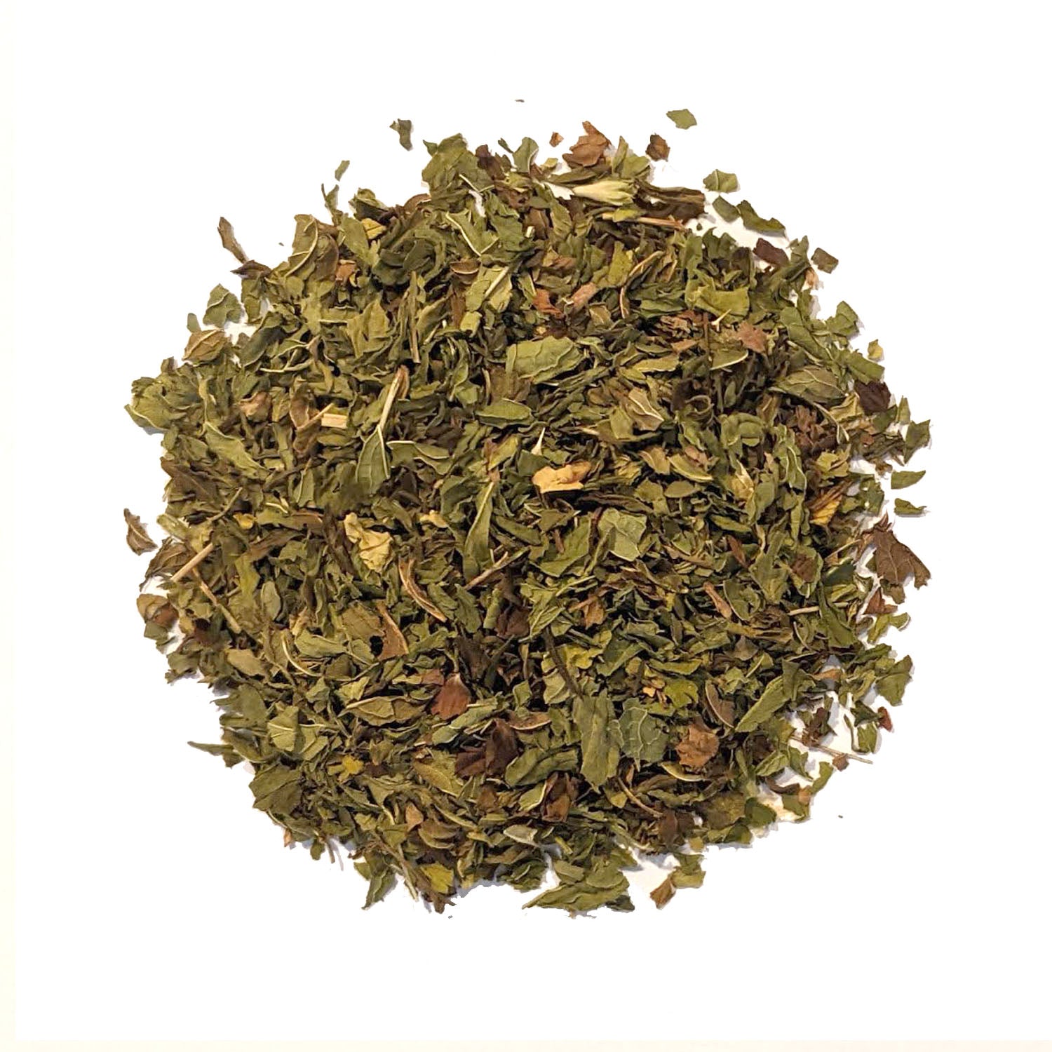 Organic and Fair Trade spearmint leaf. A wonderful herb for steeping or creating your own blends. It is widely considered to help with digestion, and is nice when you have a cold, too.